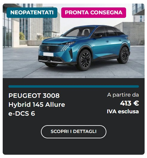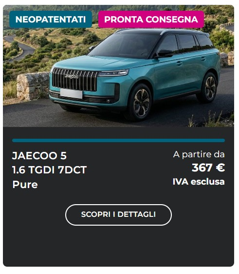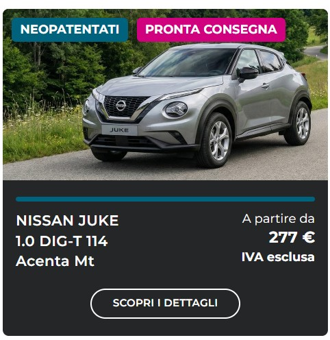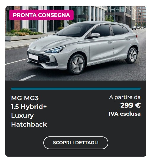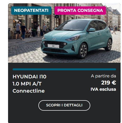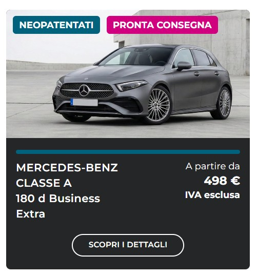 È la soluzione di mobilità che a fronte del pagamento di un canone mensile, permette ai clienti di avere un mezzo nuovo comprensivo di tutti i costi legati alla gestione dell’auto offrendo vantaggi finanziari, fiscali e gestionali.
